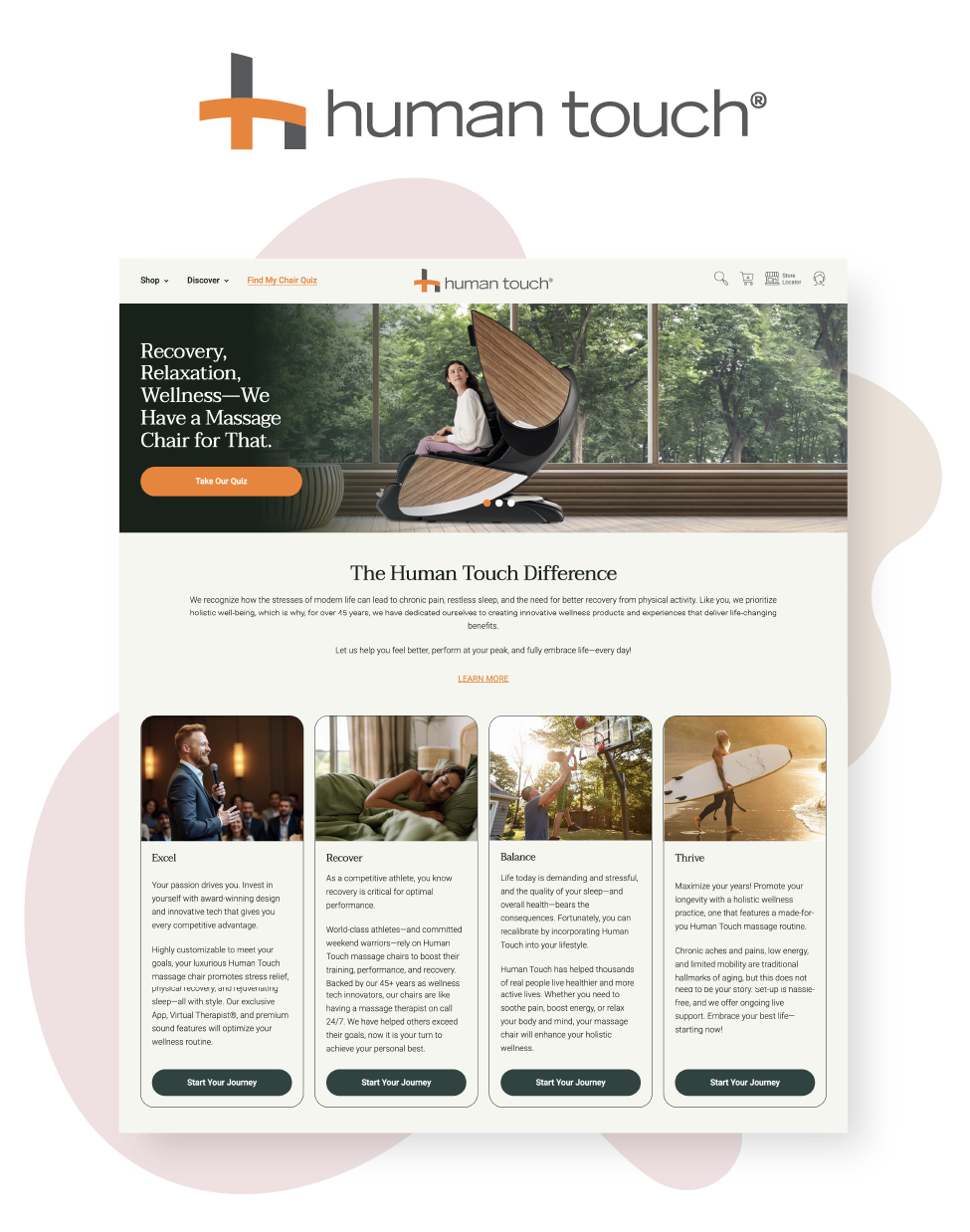 Human Touch has been a leader in high-performance massage chairs and recovery technology for over 45 years. But while its innovation remained cutting-edge, the brand’s marketing, customer experience, and identity had fallen behind. Anchored in its legacy reputation and reliant on a shrinking segment of B2B and distributor-based sales, it was struggling to connect with today’s wellness-conscious, lifestyle-driven DTC consumer.That’s where I came in. As a fractional CMO for Human Touch, I led a strategic brand refresh, developed a modern, emotionally resonant DTC marketing strategy, and laid the foundation for sustainable, consumer-led growth. Working ~10 hours per week, I focused on high-impact initiatives—from repositioning the brand to mentoring the internal team and implementing current DTC best practices.